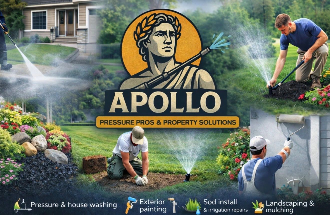 At Apollo Pressure Pros & Property Solutions, we help homeowners and businesses keep their properties clean, attractive, and well cared for. From pressure washing and exterior cleaning to painting, sod installation, irrigation repairs, and exterior improvements, we provide reliable service with attention to detail. We believe in clear communication, dependable work, and completing every project the right way from start to finish. Contact us anytime for a free quote or to schedule a consultation.